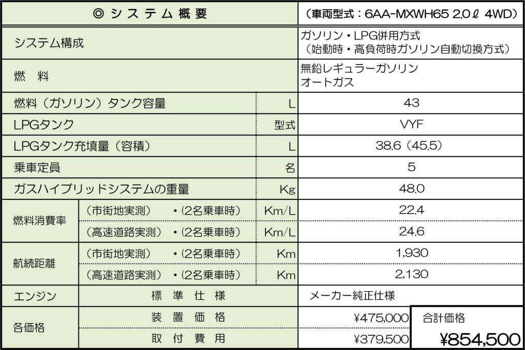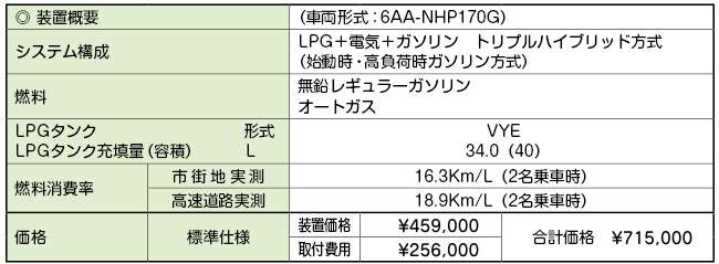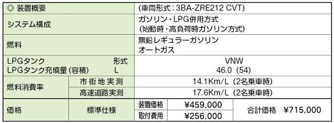 - トヨタ・カローラアクシオ用 ガスハイブリッドシステム
